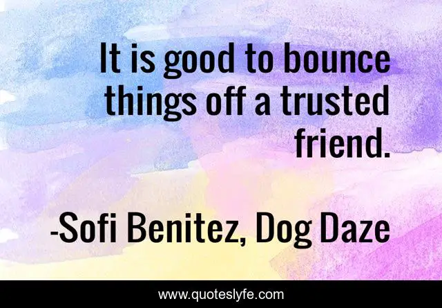 This page presents the quote "It is good to bounce things off a trusted friend.". Author of this quote is Sofi Benitez, Dog Daze. This quote is about turtle, dog-daze, honey-moon, friendship, friends,.