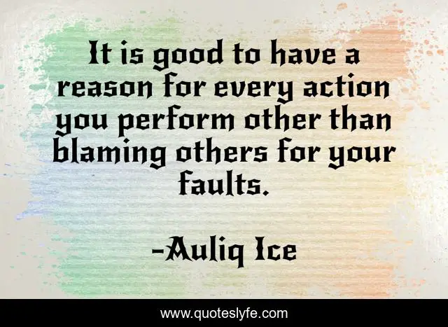 This page presents the quote "It is good to have a reason for every action you perform other than blaming others for your faults.". Author of this quote is Auliq Ice. This quote is about future-plans, plans, blaming-others, failure, correction, mistakes-we-make, mistakes, acceptance-of-oneself, planning,.