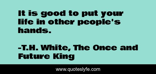 This page presents the quote "It is good to put your life in other people's hands.". Author of this quote is T.H. White, The Once and Future King. This quote is about life, trust, others,.