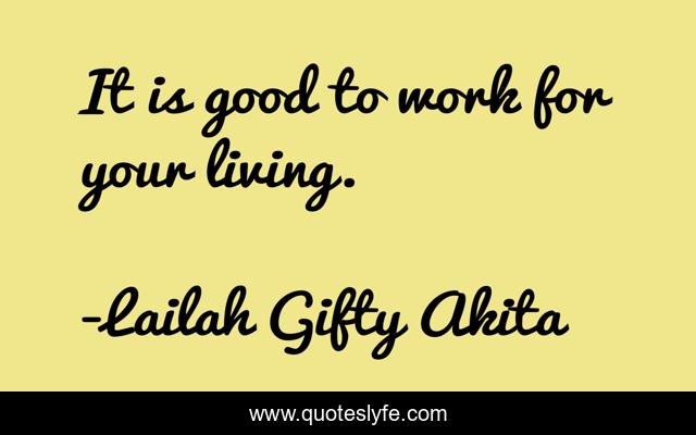 This page presents the quote "It is good to work for your living.". Author of this quote is Lailah Gifty Akita. This quote is about living, life, work,.
