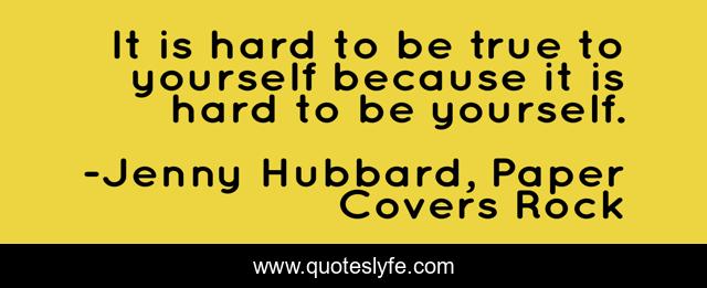 This page presents the quote "It is hard to be true to yourself because it is hard to be yourself.". Author of this quote is Jenny Hubbard, Paper Covers Rock. This quote is about me, coming-of-age, to-be, truth,.