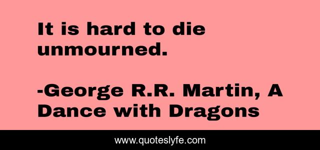 This page presents the quote "It is hard to die unmourned.". Author of this quote is George R.R. Martin, A Dance with Dragons. This quote is about die, hard, unmourned,.