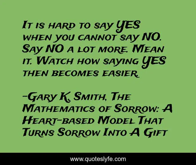 "Gary K. Smith, The Mathematics of Sorrow: A Heart-based Model That Turns Sorrow Into A Gift Quotes." Quoteslyfe.com, 2025. Sun. 07 Dec. 2025. <https://www.quoteslyfe.com/quote/It-is-hard-to-say-YES-when-148044>.
