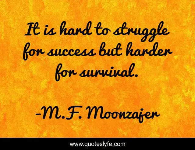 This page presents the quote "It is hard to struggle for success but harder for survival.". Author of this quote is M.F. Moonzajer. This quote is about survival, struggle, success,.