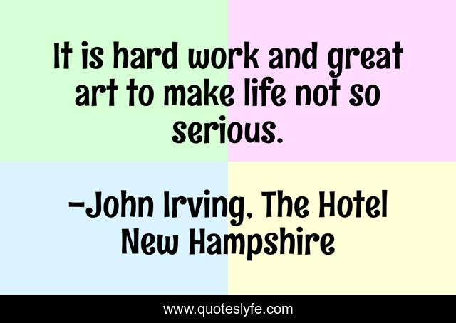 This page presents the quote "It is hard work and great art to make life not so serious.". Author of this quote is John Irving, The Hotel New Hampshire. This quote is about life, work, art,.
