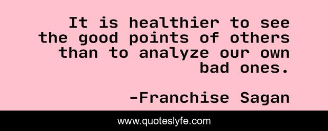 This page presents the quote "It is healthier to see the good points of others than to analyze our own bad ones.". Author of this quote is Franchise Sagan. This quote is about positive, confidence,.