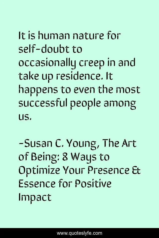 "Susan C. Young, The Art of Being: 8 Ways to Optimize Your Presence & Essence for Positive Impact Quotes." Quoteslyfe.com, 2025. Mon. 08 Dec. 2025. <https://www.quoteslyfe.com/quote/It-is-human-nature-for-self-doubt-142609>.