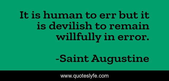 This page presents the quote "It is human to err but it is devilish to remain willfully in error.". Author of this quote is Saint Augustine. This quote is about failures, mistakes,.