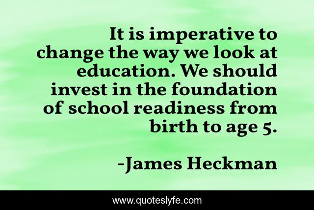 This page presents the quote "It is imperative to change the way we look at education. We should invest in the foundation of school readiness from birth to age 5.". Author of this quote is James Heckman. This quote is about school, education, change,.