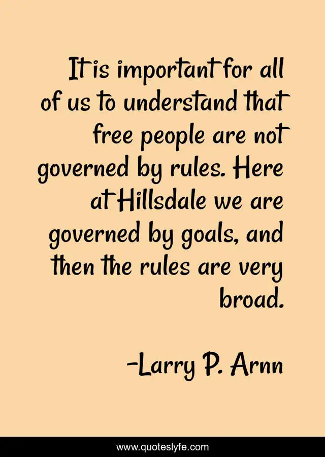 It is important for all of us to understand that free people are not governed by rules. Here at Hillsdale we are governed by goals, and then the rules are very broad.