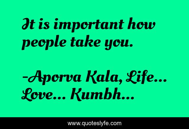"Aporva Kala, Life... Love... Kumbh... Quotes." Quoteslyfe.com, 2025. Sat. 06 Dec. 2025. <https://www.quoteslyfe.com/quote/It-is-important-how-people-take-you-162658>.