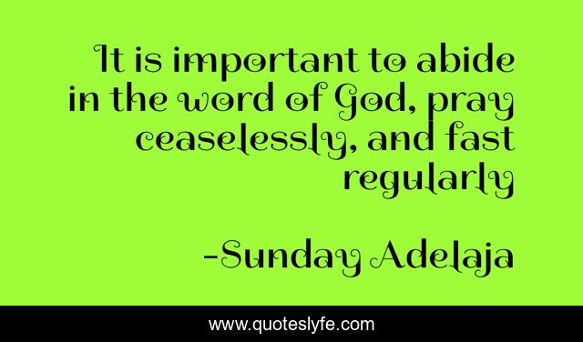 This page presents the quote "It is important to abide in the word of God, pray ceaselessly, and fast regularly". Author of this quote is Sunday Adelaja. This quote is about life, calling, purpose, goals, fulfillment,.