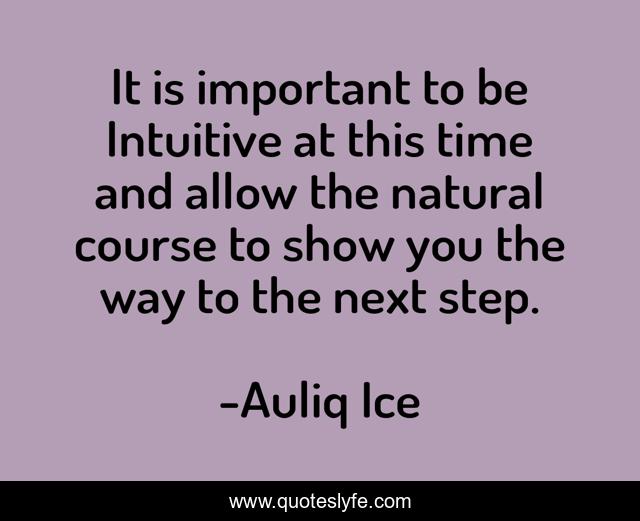 This page presents the quote "It is important to be Intuitive at this time and allow the natural course to show you the way to the next step.". Author of this quote is Auliq Ice. This quote is about patience, waiting, patience-and-criticism, patience-and-love,.