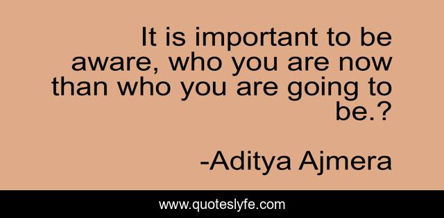 This page presents the quote "It is important to be aware, who you are now than who you are going to be.?". Author of this quote is Aditya Ajmera. This quote is about now-is-the-time, present-moment, awareness,.