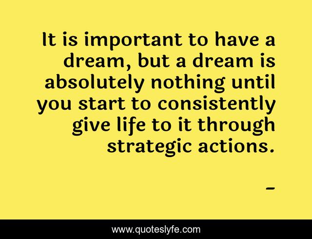 It is important to have a dream, but a dream is absolutely nothing until you start to consistently give life to it through strategic actions.