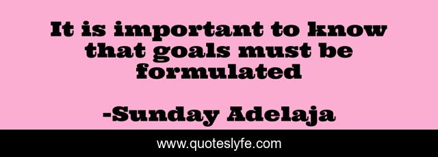 This page presents the quote "It is important to know that goals must be formulated". Author of this quote is Sunday Adelaja. This quote is about importance, goals, formulate, purpose,.