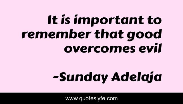 This page presents the quote "It is important to remember that good overcomes evil". Author of this quote is Sunday Adelaja. This quote is about prosperity, good, remember, money, riches, evil, important, overcome, wealth,.