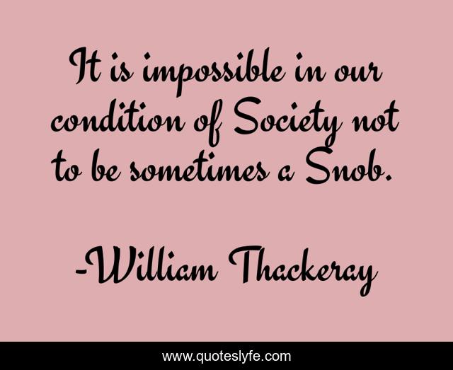 This page presents the quote "It is impossible in our condition of Society not to be sometimes a Snob.". Author of this quote is William Thackeray. .