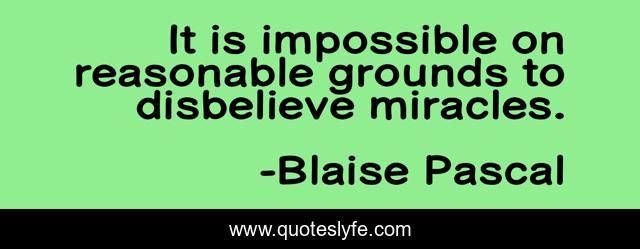 This page presents the quote "It is impossible on reasonable grounds to disbelieve miracles.". Author of this quote is Blaise Pascal. This quote is about faith, unity,.