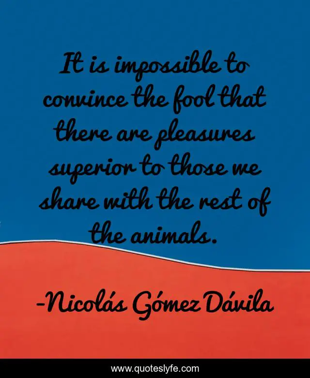 This page presents the quote "It is impossible to convince the fool that there are pleasures superior to those we share with the rest of the animals.". Author of this quote is Nicolás Gómez Dávila. .