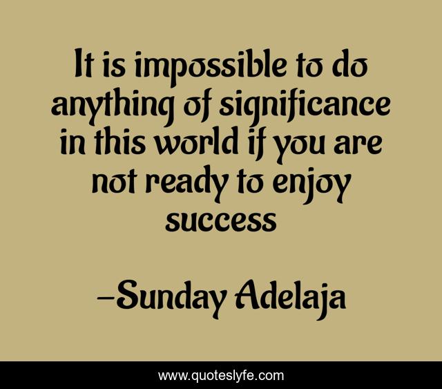 This page presents the quote "It is impossible to do anything of significance in this world if you are not ready to enjoy success". Author of this quote is Sunday Adelaja. This quote is about life, significant, success, diligence,.