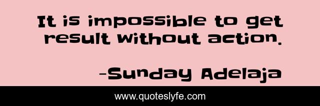 This page presents the quote "It is impossible to get result without action.". Author of this quote is Sunday Adelaja. This quote is about action, impossible, result,.