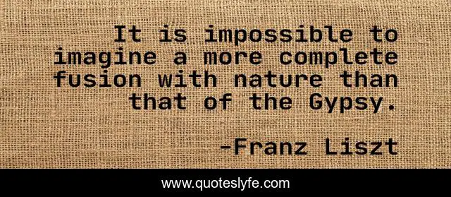 This page presents the quote "It is impossible to imagine a more complete fusion with nature than that of the Gypsy.". Author of this quote is Franz Liszt. This quote is about impossible, fusion, imagine,.