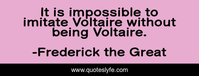 This page presents the quote "It is impossible to imitate Voltaire without being Voltaire.". Author of this quote is Frederick the Great. .