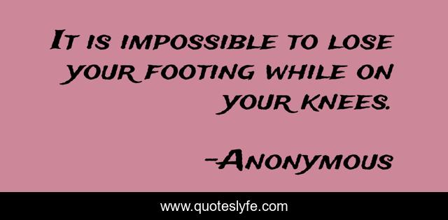 This page presents the quote "It is impossible to lose your footing while on your knees.". Author of this quote is Anonymous. .