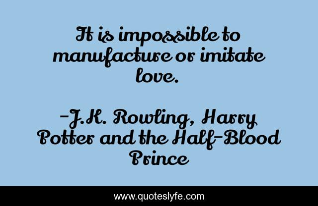This page presents the quote "It is impossible to manufacture or imitate love.". Author of this quote is J.K. Rowling, Harry Potter and the Half-Blood Prince. This quote is about romance, love, affection,.