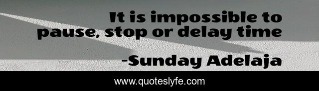 This page presents the quote "It is impossible to pause, stop or delay time". Author of this quote is Sunday Adelaja. This quote is about love, pragmatic, people, money, principles, selflessness, employment, worship, impact,.