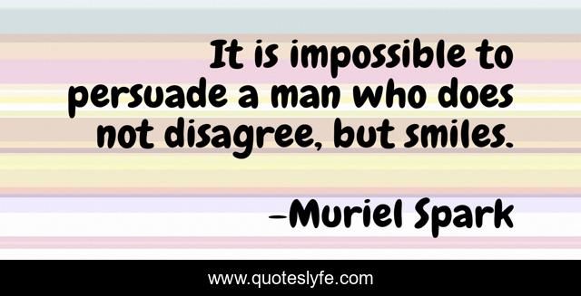 This page presents the quote "It is impossible to persuade a man who does not disagree, but smiles.". Author of this quote is Muriel Spark. This quote is about impossible, man, smiles,.