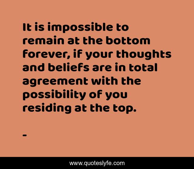 It is impossible to remain at the bottom forever, if your thoughts and beliefs are in total agreement with the possibility of you residing at the top.