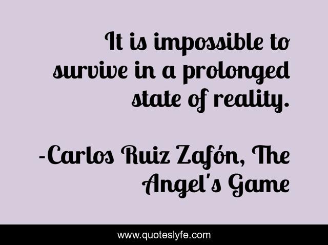 This page presents the quote "It is impossible to survive in a prolonged state of reality.". Author of this quote is Carlos Ruiz Zafón, The Angel's Game. .