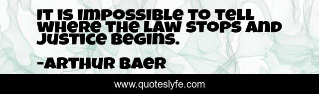 This page presents the quote "It is impossible to tell where the law stops and justice begins.". Author of this quote is Arthur Baer. This quote is about justice, impossible, law,.