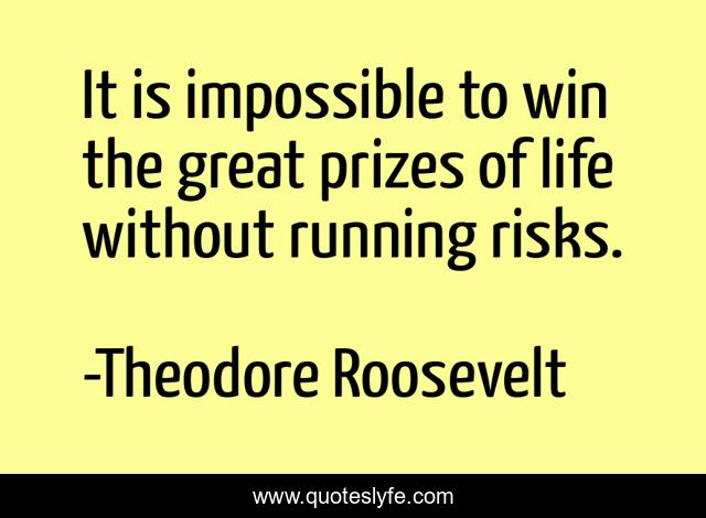 This page presents the quote "It is impossible to win the great prizes of life without running risks.". Author of this quote is Theodore Roosevelt. .
