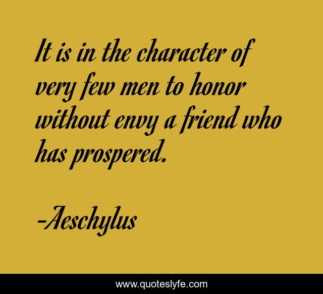 This page presents the quote "It is in the character of very few men to honor without envy a friend who has prospered.". Author of this quote is Aeschylus. This quote is about envy, humor,.