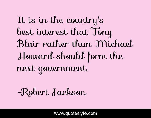 This page presents the quote "It is in the country's best interest that Tony Blair rather than Michael Howard should form the next government.". Author of this quote is Robert Jackson. This quote is about country, best, interest,.