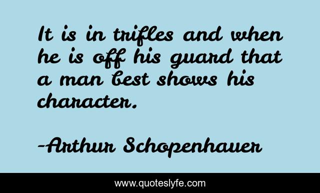 This page presents the quote "It is in trifles and when he is off his guard that a man best shows his character.". Author of this quote is Arthur Schopenhauer. .