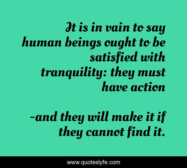 It is in vain to say human beings ought to be satisfied with tranquility: they must have action
