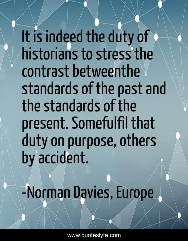 This page presents the quote "It is indeed the duty of historians to stress the contrast betweenthe standards of the past and the standards of the present. Somefulfil that duty on purpose, others by accident.". Author of this quote is Norman Davies, Europe. .