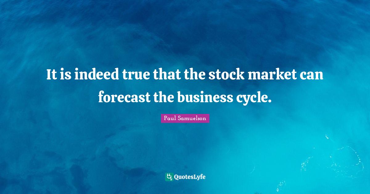 This page presents the quote "It is indeed true that the stock market can forecast the business cycle.". Author of this quote is Paul Samuelson. This quote is about stock market, true, forecast,.