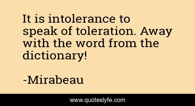 This page presents the quote "It is intolerance to speak of toleration. Away with the word from the dictionary!". Author of this quote is Mirabeau. .