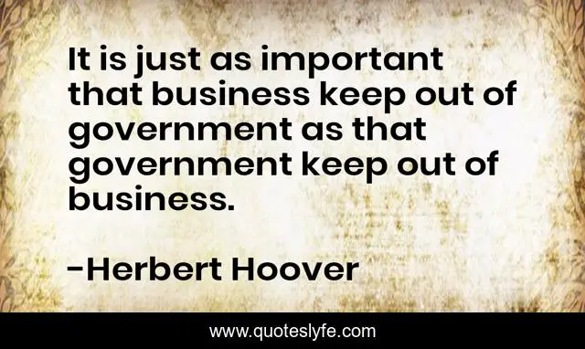 This page presents the quote "It is just as important that business keep out of government as that government keep out of business.". Author of this quote is Herbert Hoover. This quote is about important, just, government,.