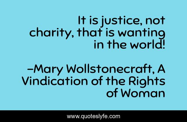 This page presents the quote "It is justice, not charity, that is wanting in the world!". Author of this quote is Mary Wollstonecraft, A Vindication of the Rights of Woman. This quote is about justice, charity,.