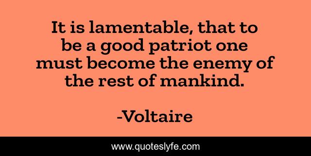 This page presents the quote "It is lamentable, that to be a good patriot one must become the enemy of the rest of mankind.". Author of this quote is Voltaire. This quote is about patriot, patriotism, rest,.