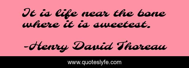 This page presents the quote "It is life near the bone where it is sweetest.". Author of this quote is Henry David Thoreau. .