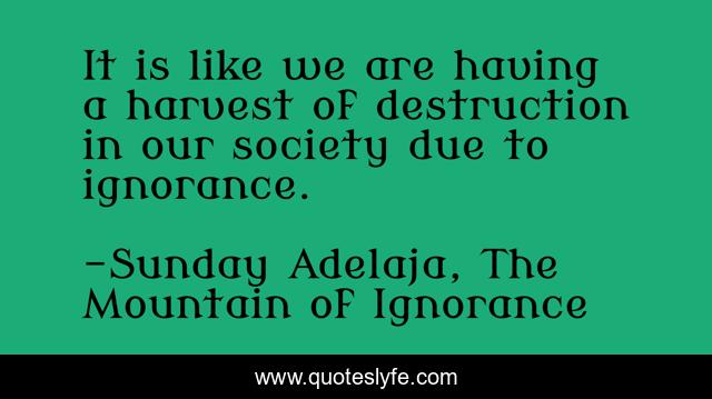 This page presents the quote "It is like we are having a harvest of destruction in our society due to ignorance.". Author of this quote is Sunday Adelaja, The Mountain of Ignorance. This quote is about mountain, life, darkness, power, danger, god, people, ignorance, society,.