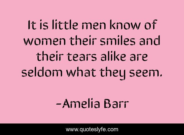 This page presents the quote "It is little men know of women their smiles and their tears alike are seldom what they seem.". Author of this quote is Amelia Barr. This quote is about tears, men,.