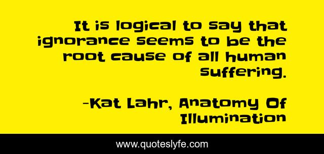 This page presents the quote "It is logical to say that ignorance seems to be the root cause of all human suffering.". Author of this quote is Kat Lahr, Anatomy Of Illumination. This quote is about knowing, ignorance-isn-t-bliss, knowledge, understanding-others, knowing-others, understanding-people, humanity-and-society, ignorance, suffering,.